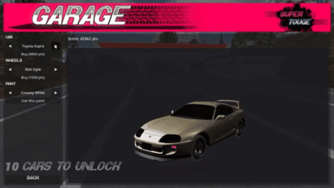 - Use your score to get new cars, wheels or paintjobs (See garage menu)